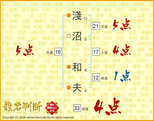 淺沼和夫さんの総運は33画の4点!