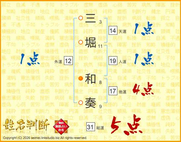 三堀和奏さんの総運は31画の5点!