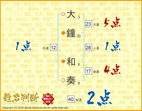 大(3画)鐘(20画) 和(8画)奏(9画)