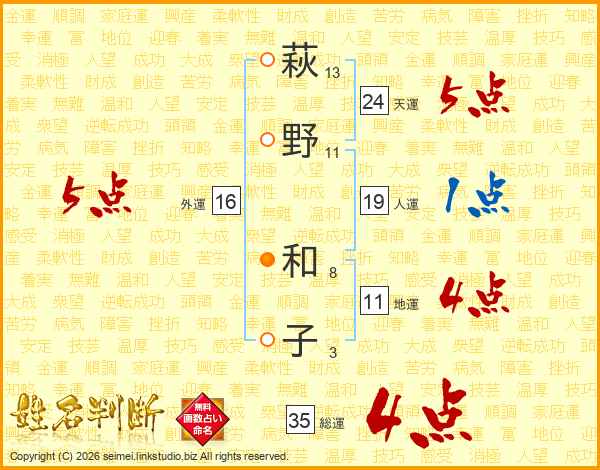 萩野和子さんの総運は35画の4点!