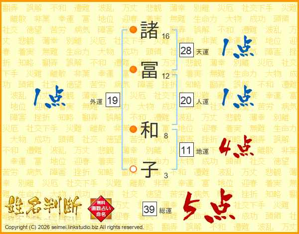 諸冨和子さんの総運は39画の5点!