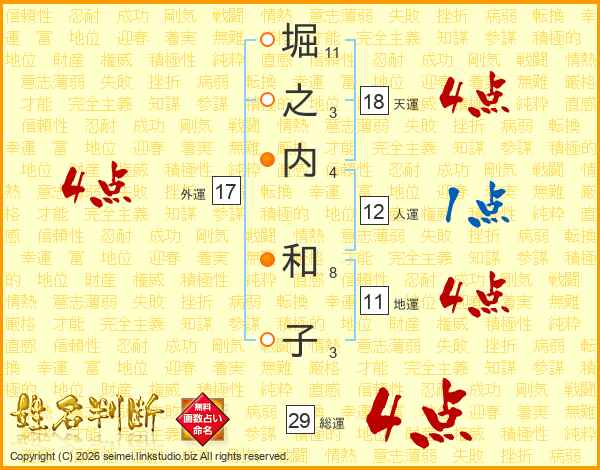 堀之内和子さんの地運は11画の4点!