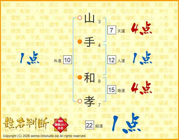 山手和孝さんの地運は15画の4点!