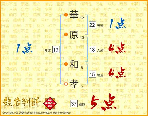 華原和孝さんの総運は37画の5点!
