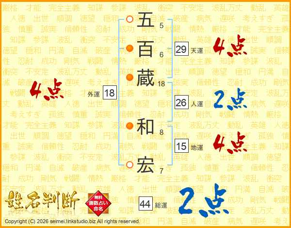 五(5画)百(6画)蔵(18画) 和(8画)宏(7画)