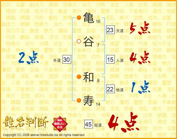 亀谷和寿さんの総運は45画の4点!
