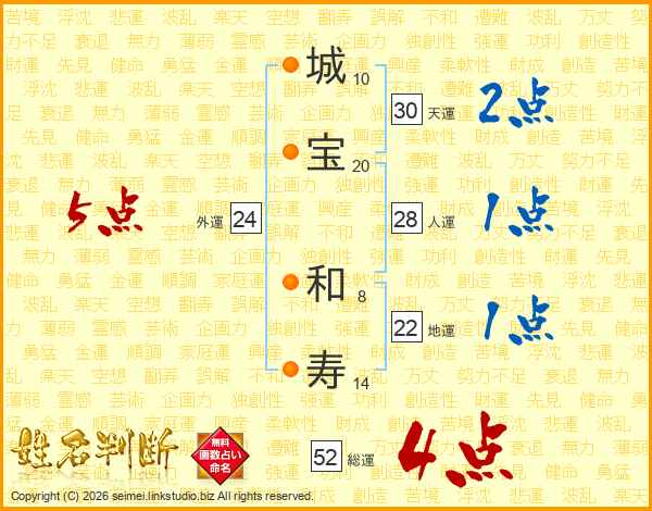 城宝和寿さんの総運は52画の4点!