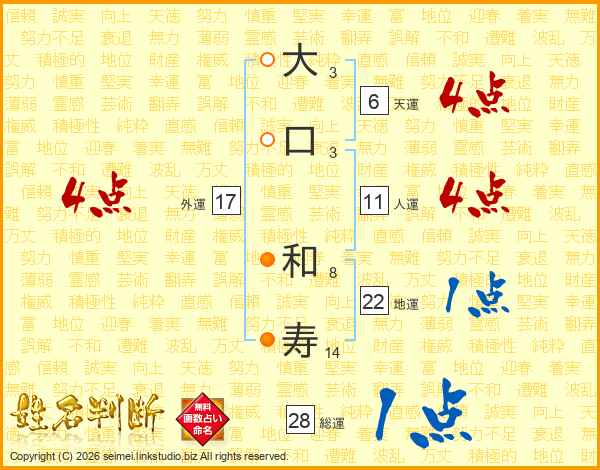 大口和寿さんの人運は11画の4点!