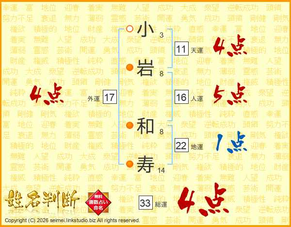 小岩和寿さんの総運は33画の4点!