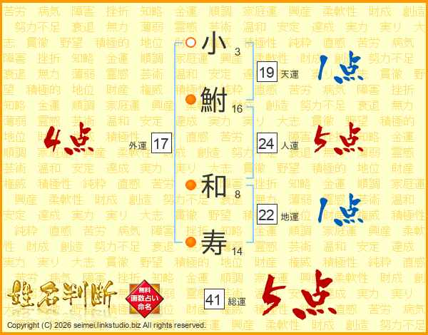 小(3画)鮒(16画) 和(8画)寿(14画)