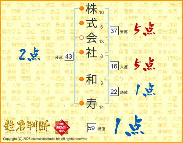 株(10画)式(6画)会(13画)社(8画) 和(8画)寿(14画)