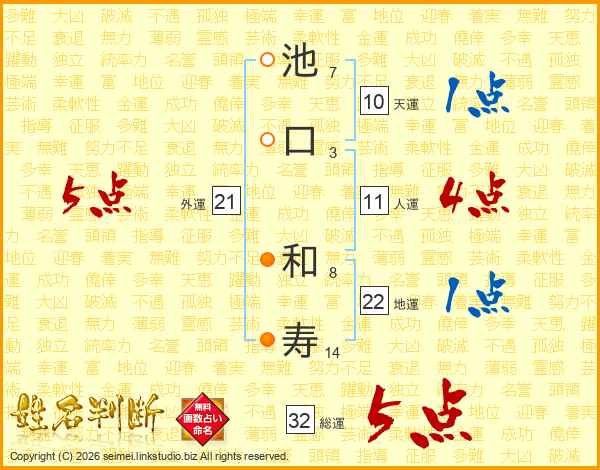 池口和寿さんの総運は32画の5点!