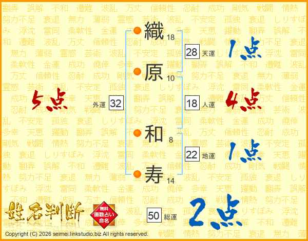 織原和寿さんの外運は32画の5点!