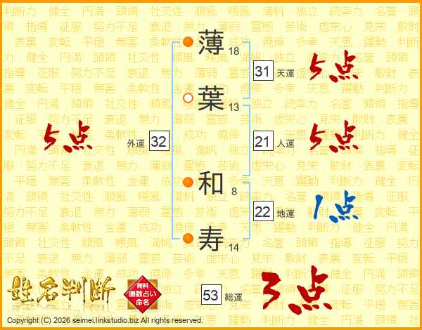 薄(18画)葉(13画) 和(8画)寿(14画)