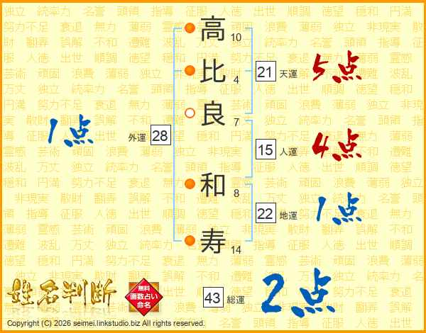 高比良和寿さんの総運は43画の2点!