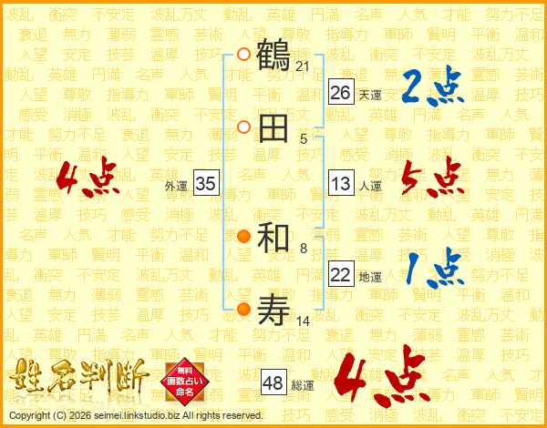 鶴田和寿さんの総運は48画の4点!