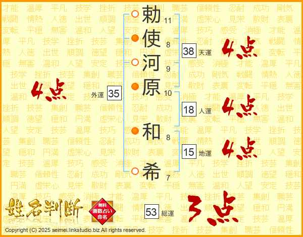 勅使河原和希さんの総運は53画の3点!