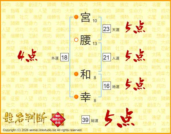 宮(10画)腰(13画) 和(8画)幸(8画)