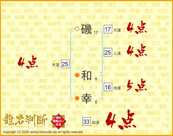 磯和幸さんの総運は33画の4点!