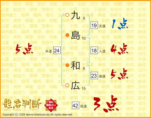 九(9画)島(10画) 和(8画)広(15画)