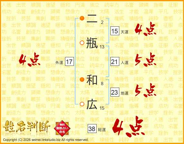 二瓶和広さんの総運は38画の4点!