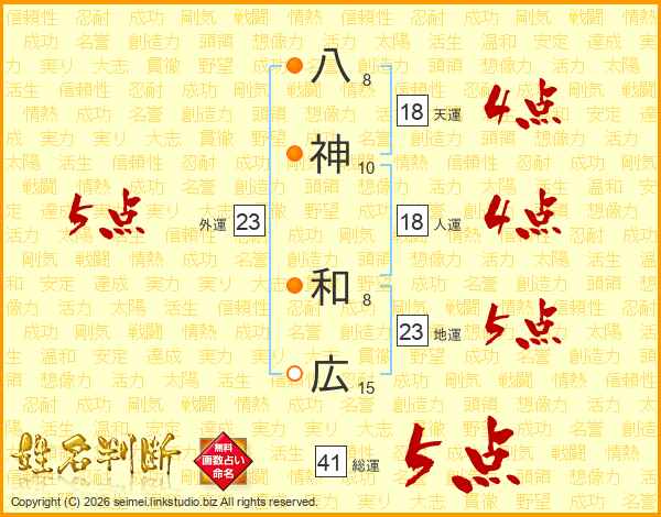 八神和広さんの総運は41画の5点!