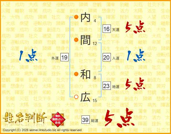 内間和広さんの総運は39画の5点!