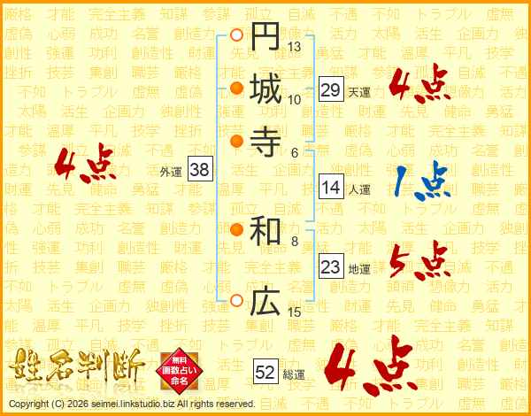円(13画)城(10画)寺(6画) 和(8画)広(15画)