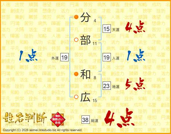 分部和広さんの総運は38画の4点!