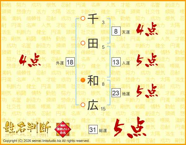 千田和広さんの総運は31画の5点!
