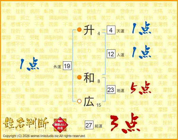 升和広さんの地運は23画の5点!