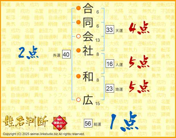 合同会社和広さんの天運は33画の4点!