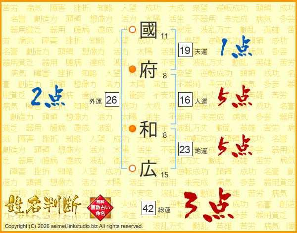 國府和広さんの天運は19画の1点!