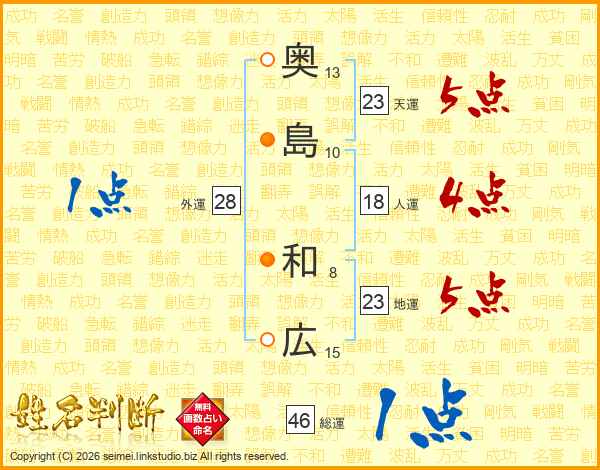 奥島和広さんの総運は46画の1点!
