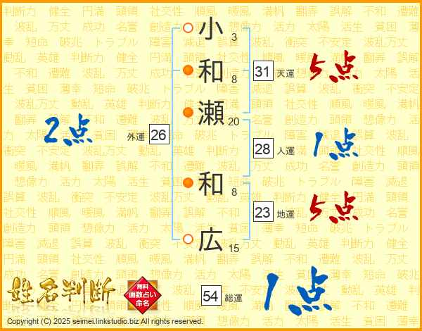 小和瀬和広さんの総運は54画の1点!