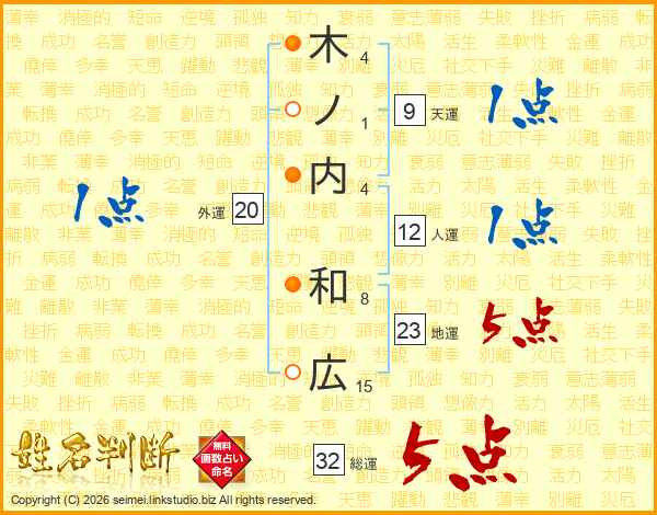 木ノ内和広さんの総運は32画の5点!