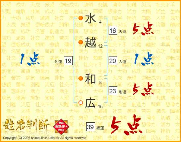 水越和広さんの総運は39画の5点!
