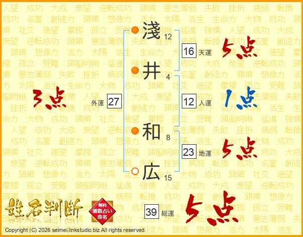 淺井和広さんの総運は39画の5点!