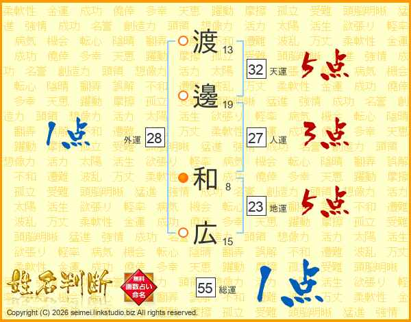 渡邊和広さんの天運は32画の5点!