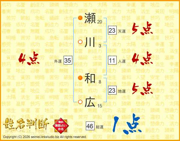 瀬川和広さんの総運は46画の1点!