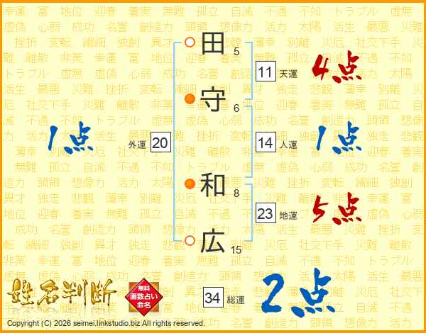 田守和広さんの人運は14画の1点!