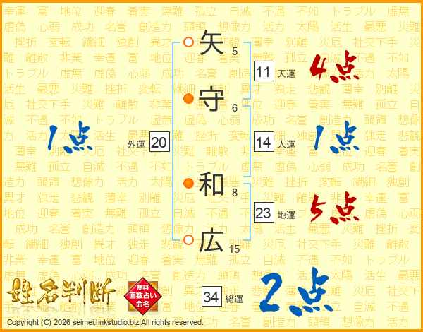 矢守和広さんの人運は14画の1点!
