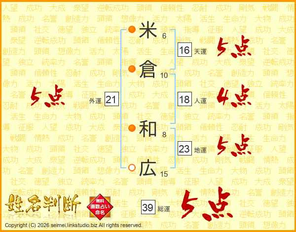 米倉和広さんの総運は39画の5点!