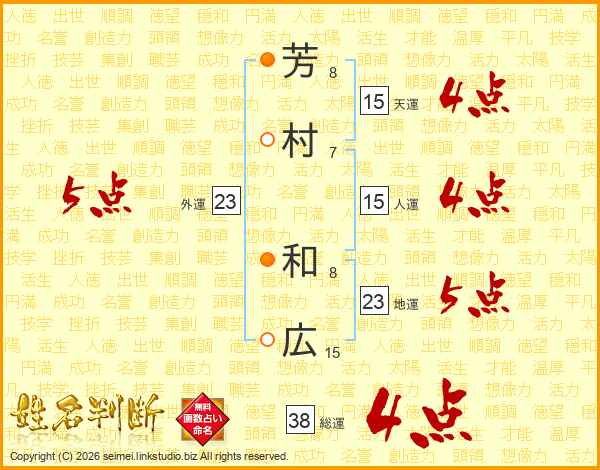 芳村和広さんの総運は38画の4点!