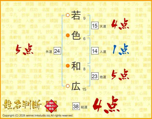 若色和広さんの総運は38画の4点!