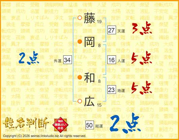 藤岡和広さんの天運は27画の3点!