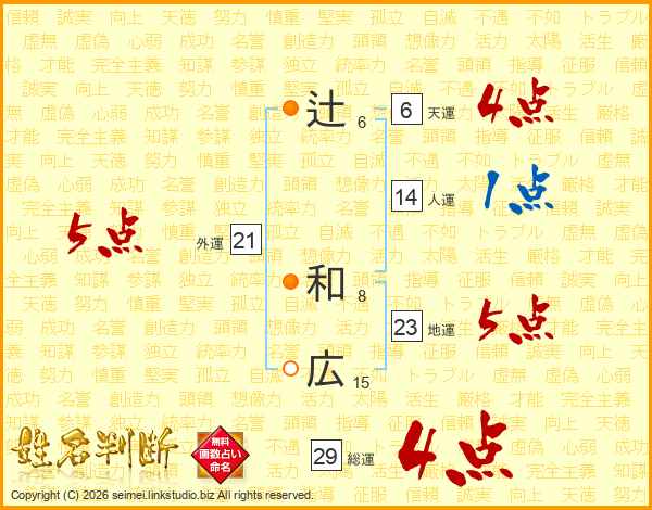 辻(6画) 和(8画)広(15画)
