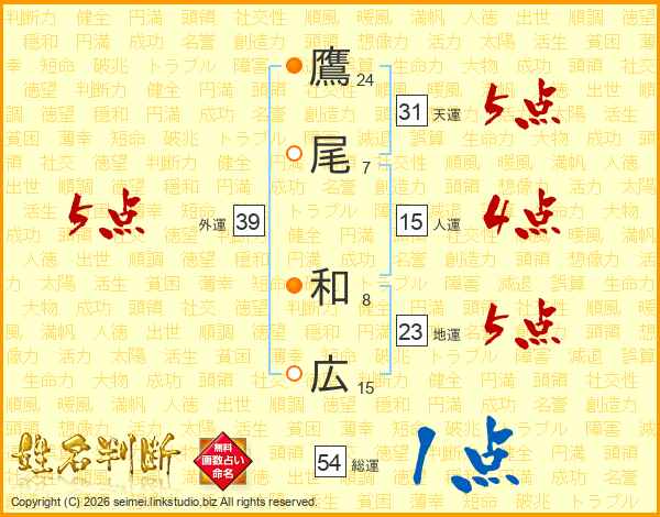 鷹尾和広さんの総運は54画の1点!