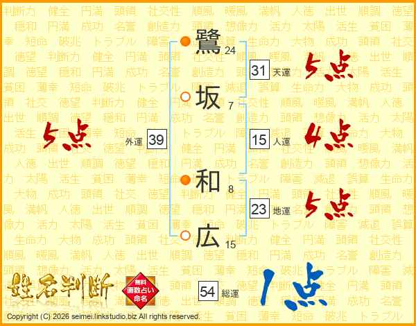 鷺坂和広さんの総運は54画の1点!