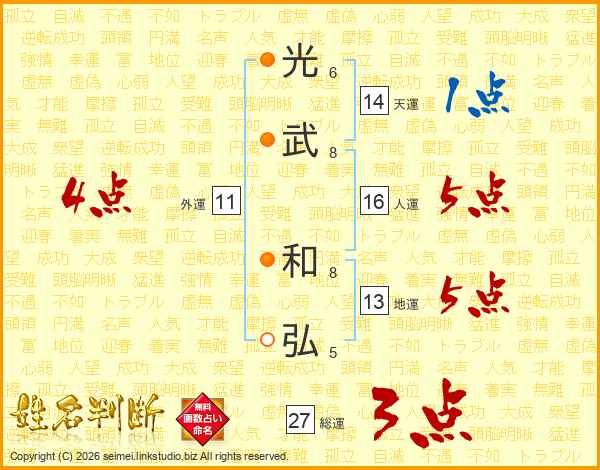 光武和弘さんの総運は27画の3点!